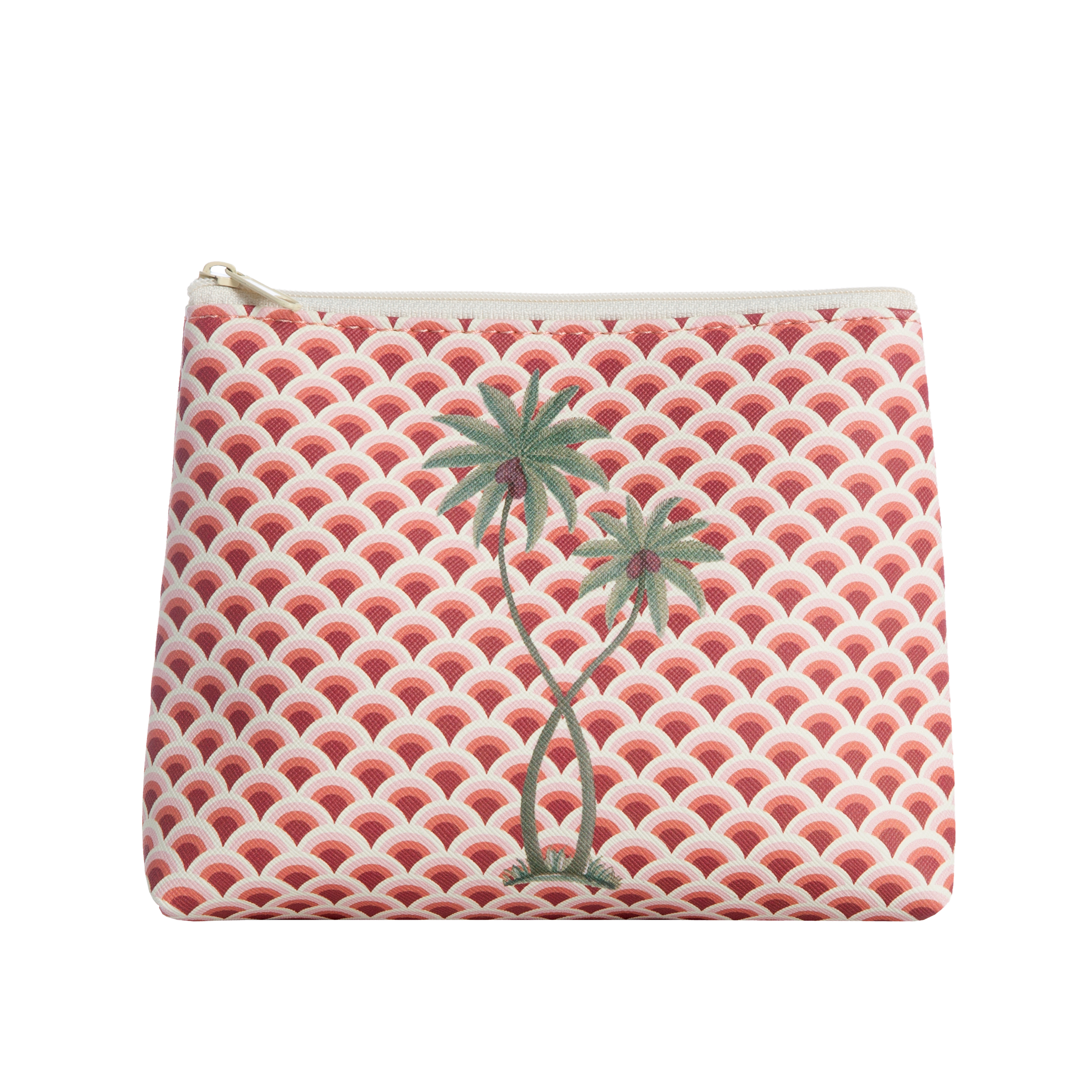 Keep your get-glam essentials organized with our small MAYA toiletry bag. In Bella Botanica this bag features our neoclassic scallop print and little palm tree.