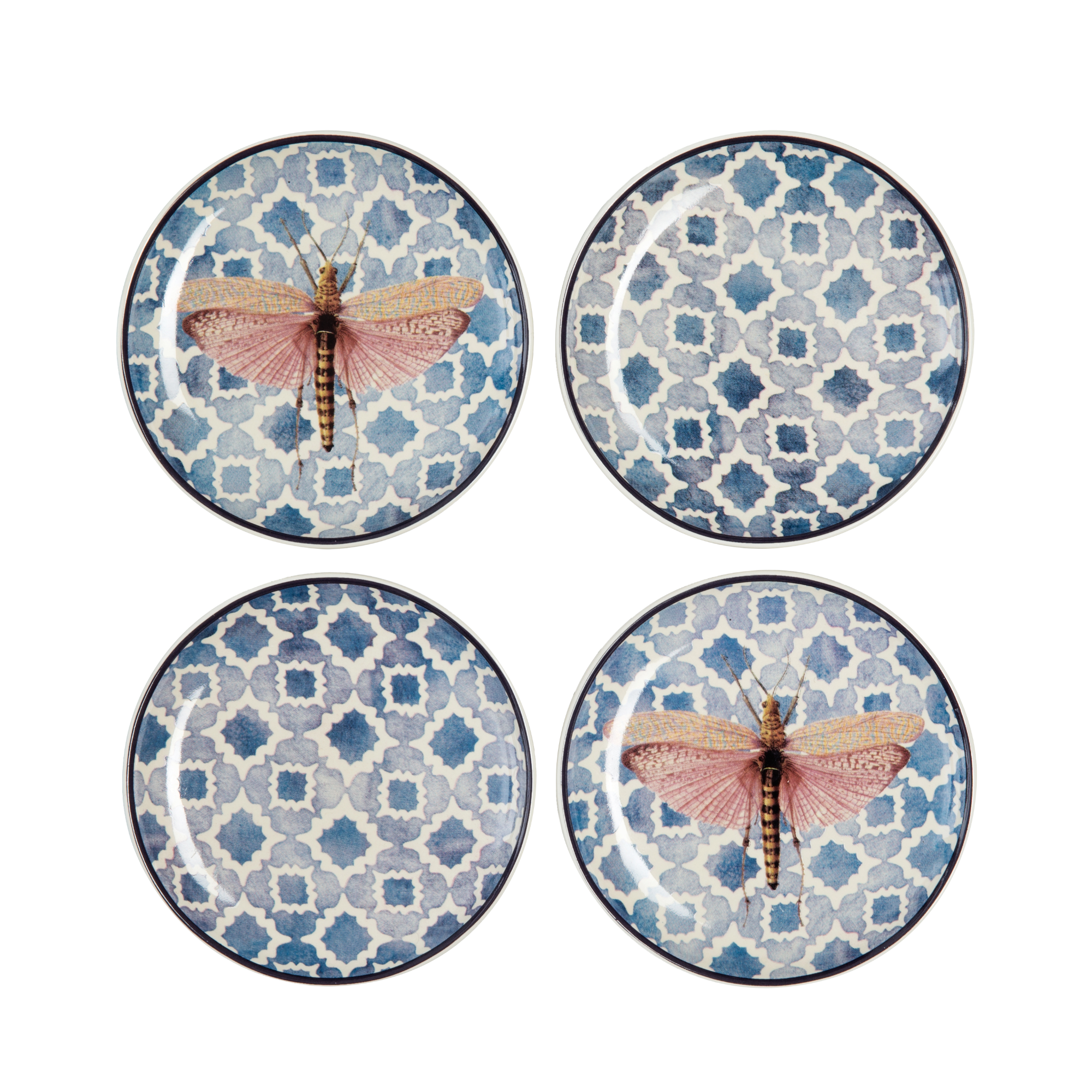 MALO small plates from our Fauna Treasure collection. This product comes with four small plates as a set. Two of the plates feature the Fauna Treasure pattern, while the other two feature our lucky dragonfly.