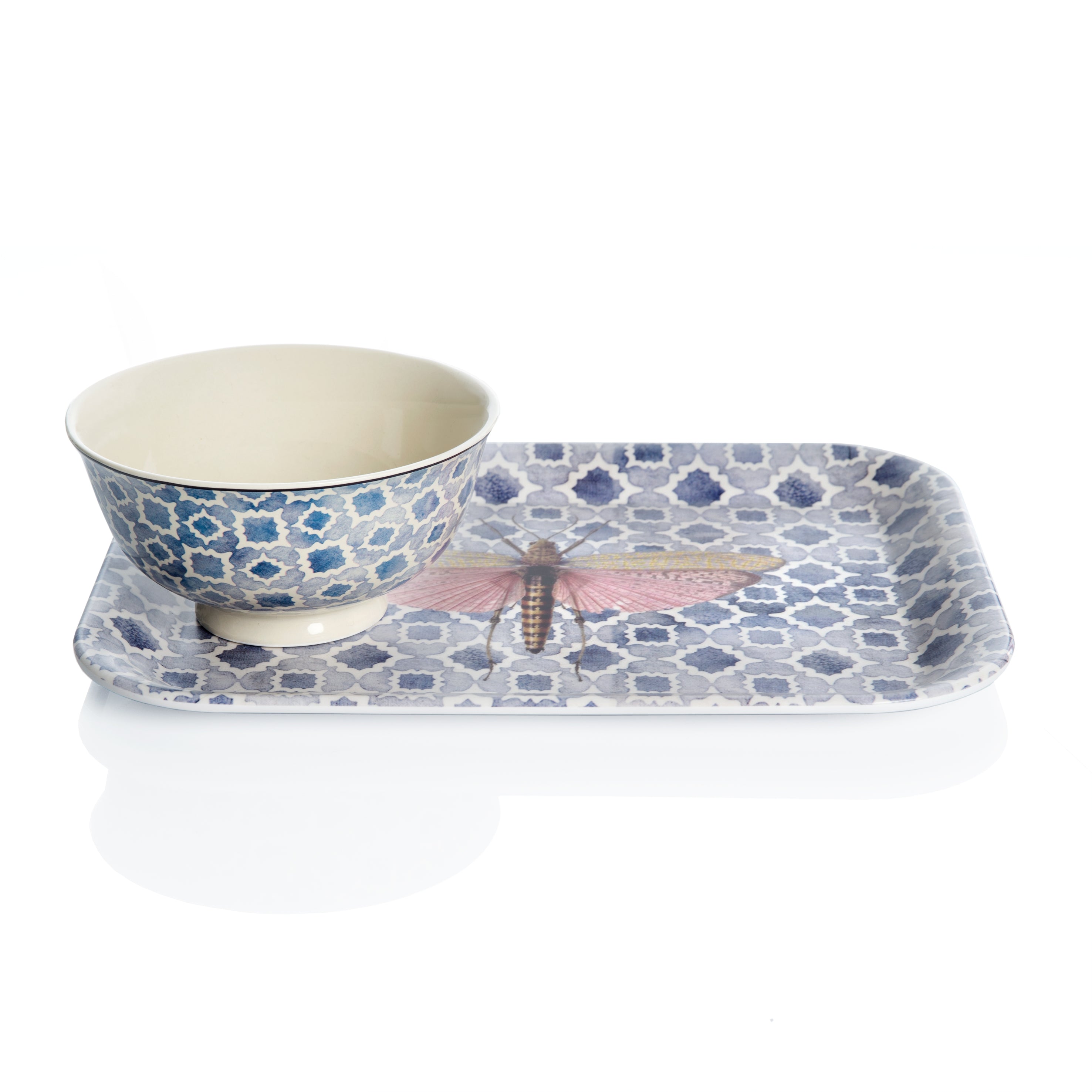 Our MILLA tray is a small tray that features our Fauna Treasure design with a soft pale sky-blue color and our lucky dragonfly.