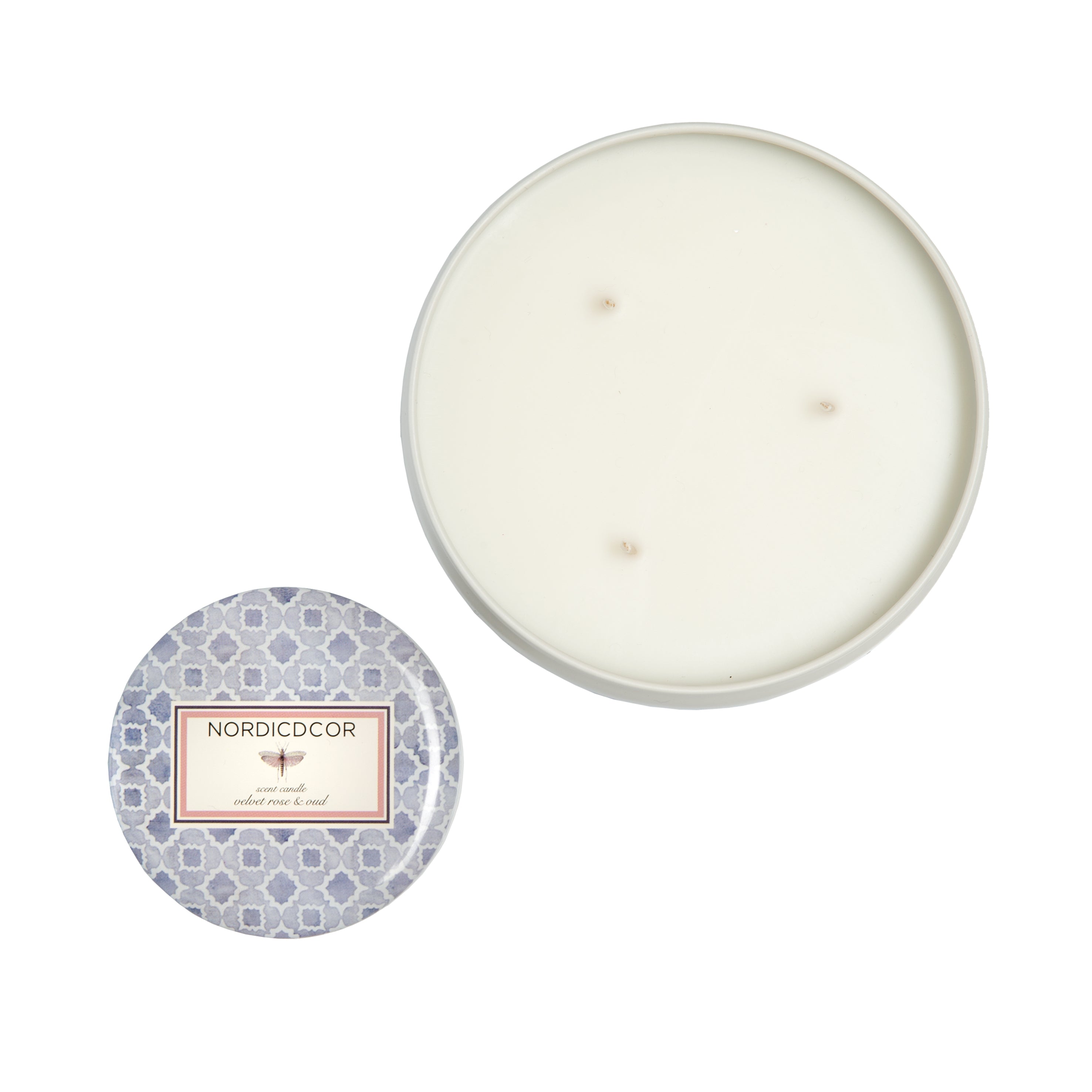 With fragrance wafting from each of the three wicks, enjoy the scent of velvet rose & oud. Our big SANA tin candle features a lid with our beautiful Fauna Treasure print, combined with a matt ecru bottom base. Our Scented Candles comes in two sizes and pairs perfectly together.
