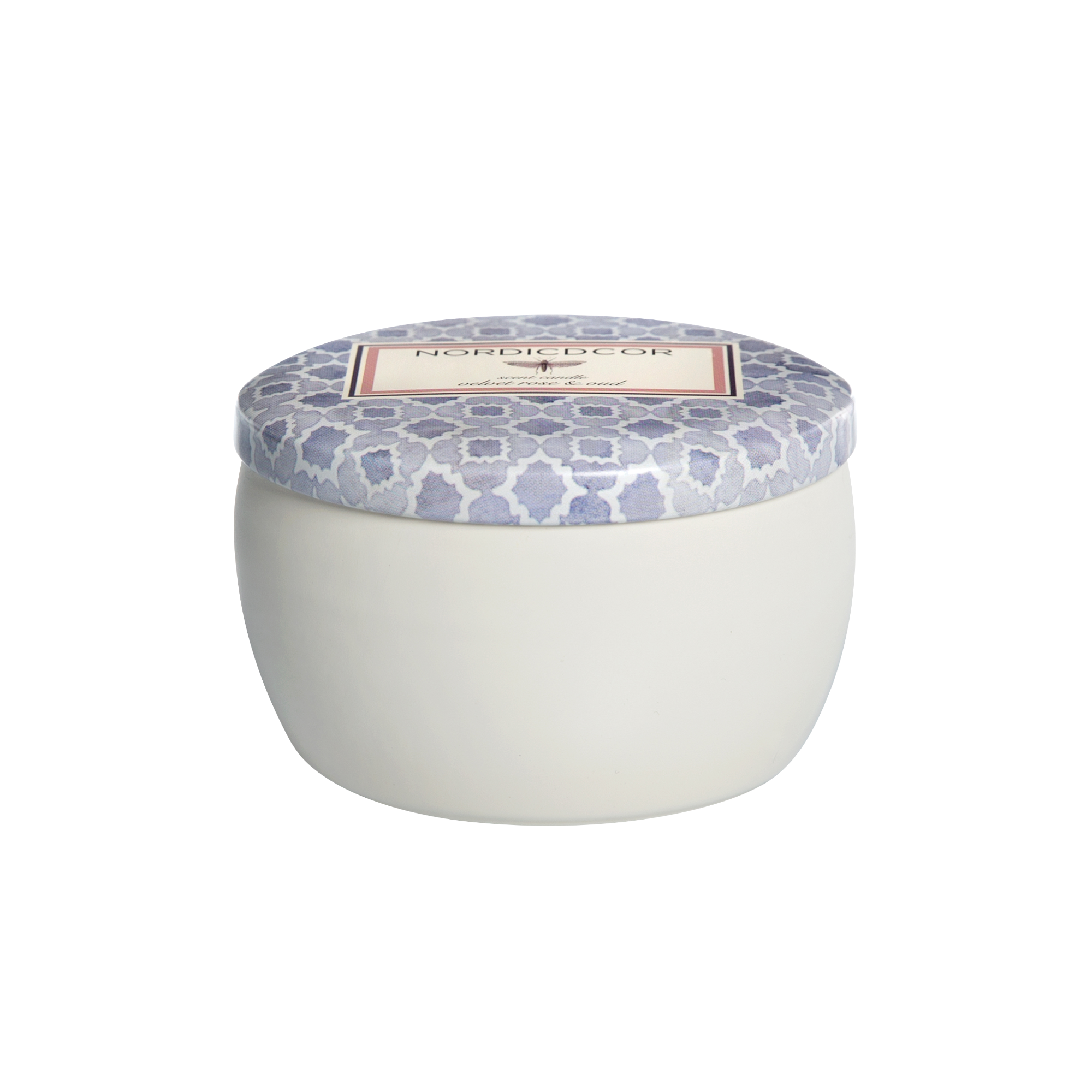 Fill your home with the scent of velvet rose & oud. Our small SANA tin candle features a lid with our beautiful Fauna Treasure print, combined with a matt ecru bottom base. Our Scented Candles comes in two sizes that pair perfectly together.