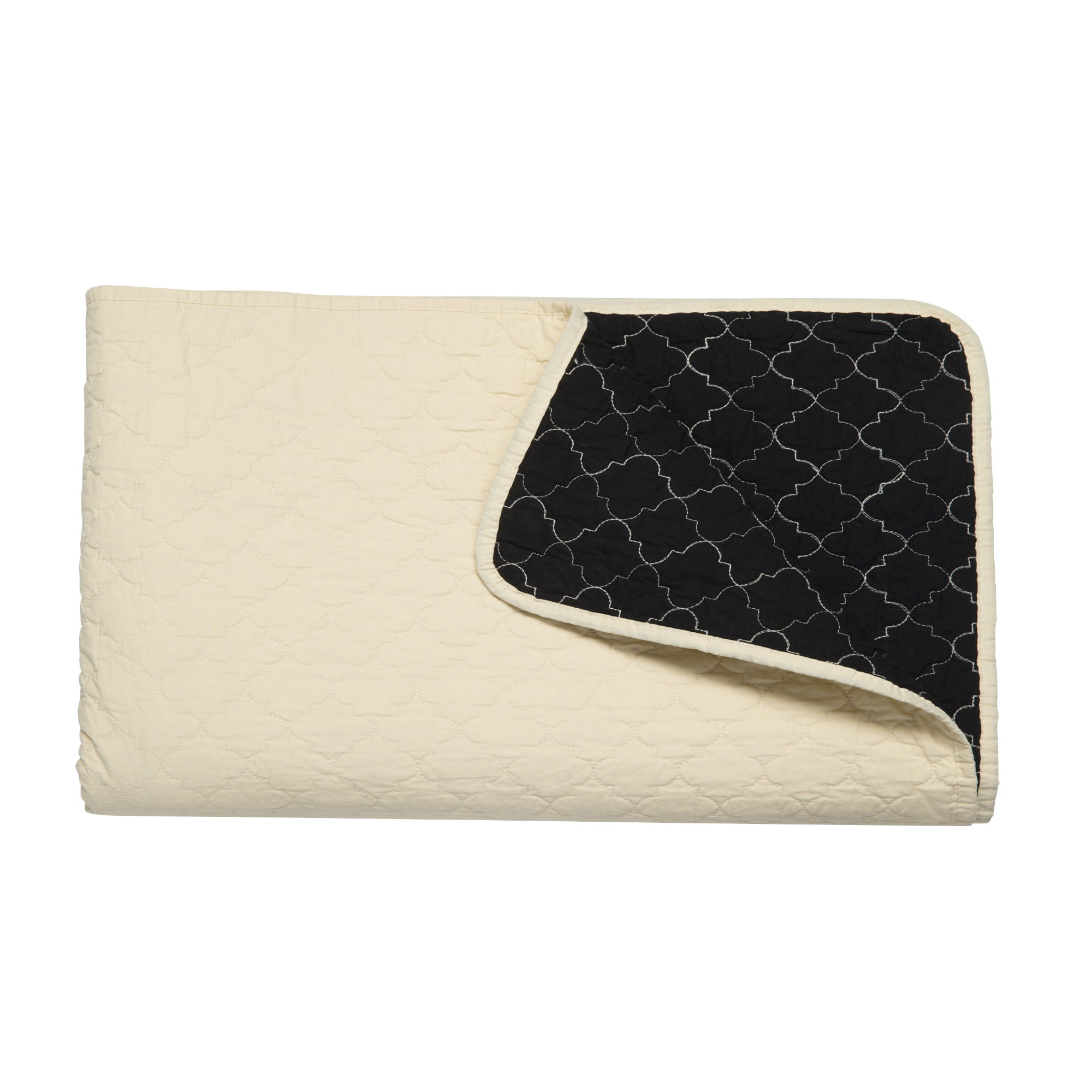 Our KARITA quilted bedcover in cotton from our Geometric Sun collection. Made from 100% cotton, with a washed look, our KARITA bedcover is characterized by its ecru front and black back.